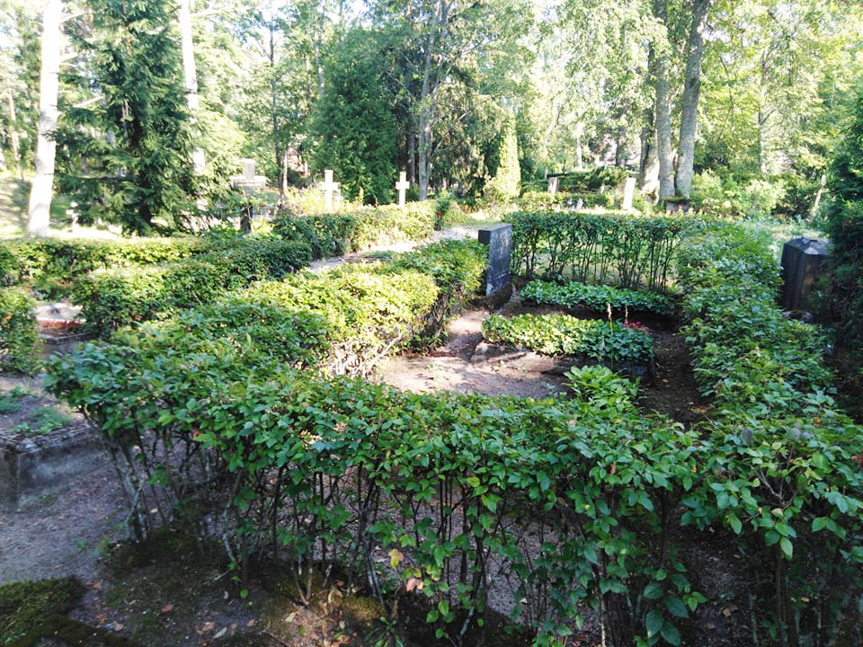Siun­čiu jums ke­lias nuo­trau­kas, ku­rias nu­fo­tog­ra­fa­vau vie­na­me Lat­vi­jos kai­me­ly­je. Prie ka­pi­nai­čių var­tų yra pla­nas, ku­ria­me su­žy­mė­tos ka­pa­vie­tės. Ma­ne su­ža­vė­jo, kaip kuk­liai ir jau­kiai ka­pi­nai­tės su­tvar­ky­tos. Kiek­vie­nos šei­mos ka­pa­vie­tė ap­so­din­ta neaukš­ta gy­vat­vo­re, pa­bars­ty­ta smė­liu. Jo­kio gra­ni­to, ply­te­lių, trin­ke­lių. Taip or­ga­niš­ka ir na­tū­ra­lu... Ir nors gy­vat­vo­rės iš to­lo pri­me­na la­bi­rin­tą, ka­pi­nai­tė­se klai­džio­ti ieš­kant ka­pa­vie­tės ne­rei­kia – vis­kas aiš­ku, pa­žiū­rė­jus į pla­ną".