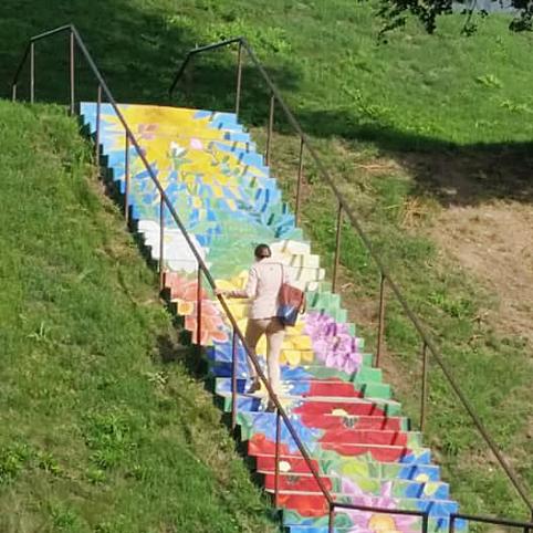 Prieš Biržų miesto šventę "Saulės" gimnazijos dailės mokytoja Daiva Zalogienė ir jos mokiniai sumanė pradžiuginti biržiečius ir miesto svečius. Malonus netikėtumas – laiptai į Pilį pražydo gėlėmis!