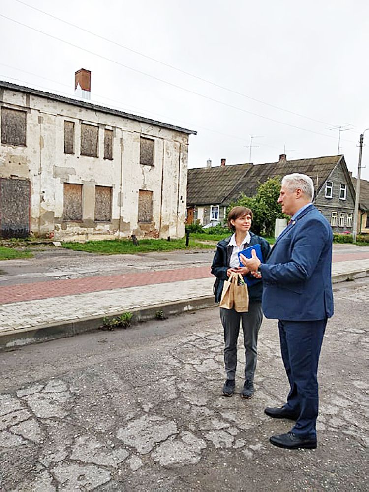 Su specialiste susitiko Biržų rajono savivaldybės meras Vytas Jareckas ir Savivaldybės administracijos Architektūros ir urbanistikos skyriaus vyriausiasis specialistas (paveldosaugos) Dalius Mikelionis.