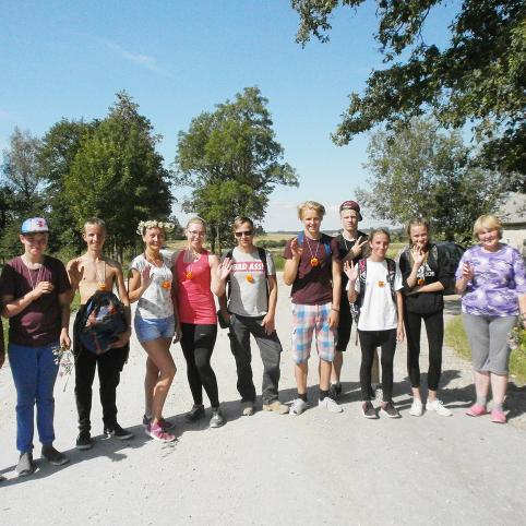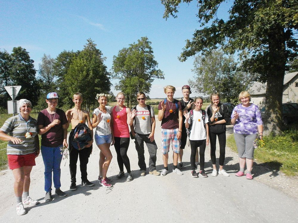 Skrebiškių kaimo kultūros namų darbuotoja Marytė Undzėnienė sugeba suburti kaimo žmones įvairioms veikloms. Mintis pakeliauti pėsčiomis Marytei seniai nedavė ramybės. Šiai minčiai pritarė: Danutė, Dovilė, Viktorija, Linutė, Ugnė, Antanas, Marijus, Klaudijus, Rapolas,Kornelijus.