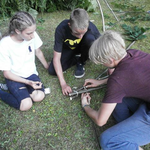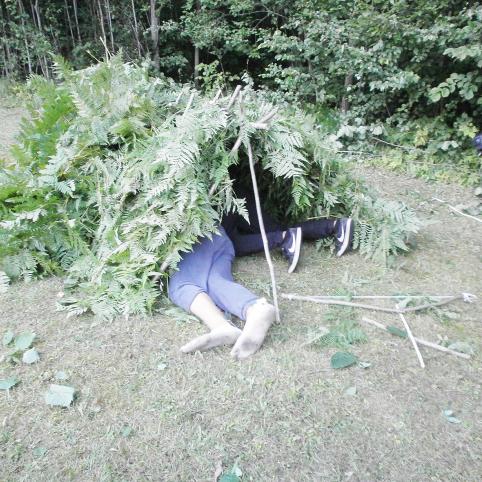 Kelionei buvo paskirtos dvi dienos. Pirmąją dieną keliautojai nuėjo 26 km ir nakvynei apsistojo Biržų girios glūdumoje,”Vidugirio”poilsiavietėje. Ją skoningai įrengė Spalviškių girininkija. Girios apsuptyje keliautojai ilsėjosi, žaidė ir kūrė iš to, ką rado gamtoje. Iš lazdyno šakų padarytų lankų strėlės lėkė per visą poilsiavietę. Iš paparčių ir šakų pastatytoje palapinėje neatsirado norinčių miegoti per naktį. Poilsiavietės kiemą keliautojai išpuošė originaliais paveikslais iš to ką rado gamtoje. Taip mergaitės padarė 11 gėlės žiedų iš klevo lapų. Paprasta ir gražu. Vieni puošė poilsiavietę kiti suspėjo prigrybauti grybų ir užkurti laužą. Vakarienei, dviejų kaliautojų mama Jurgita, atvežė skanios sriubos. Pasistatęs palapines jaunimas dar ilgai vakarojo.
