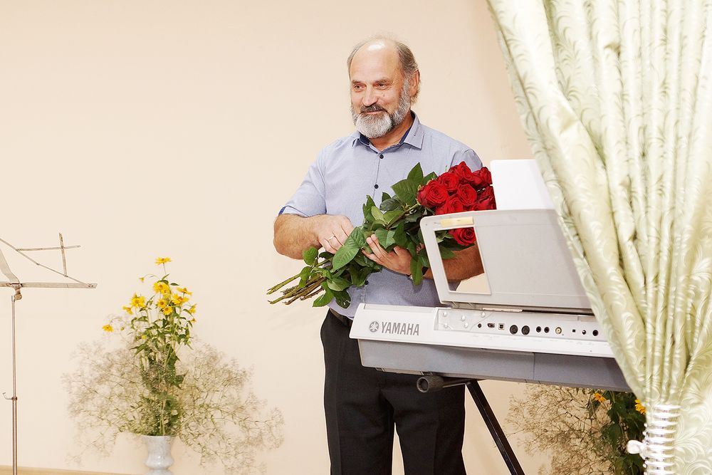 Ne­daug­žo­džiau­da­mas, kuk­liai pri­si­sta­tė Skre­biš­kių mo­te­rų an­samb­lio va­do­vas Jo­nas Strun­kis. Įtei­kė sa­vo dai­ni­nin­kėms po ro­žės žie­dą. O po to su­skam­bo dai­nos, ku­rias ly­dė­jo gau­sūs klau­sy­to­jų ap­lo­dis­men­tai.