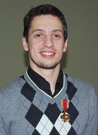 ŽENKLAS: Pasaulio kurčiųjų krepšinio aukso medalio laimėtojas Arvydas Bareikis apdovanotas Joniškio rajono savivaldybės Padėkos ženklu.