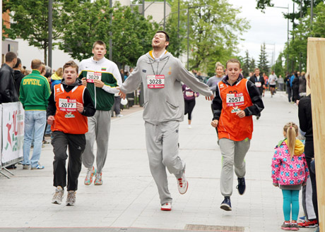 POVEIKIS: Gerų emocijų negailėjo bėgime dalyvavę „Šiaulių“ krepšininkai – Ignas Ramašauskas (centre) ir Rokas Giedraitis (antras iš kairės).