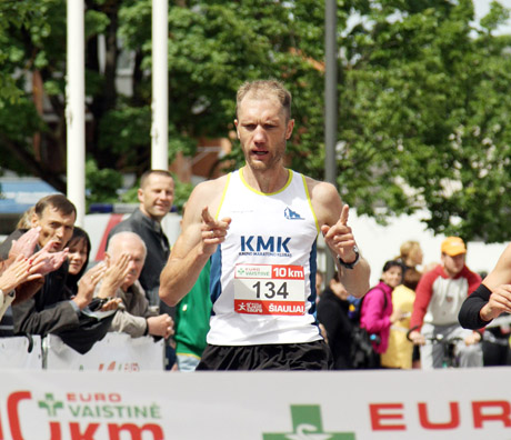 ČEMPIONAI: Pirmas vietas 10 kilometrų bėgime iškovojo profesionalai: vyrų grupėje – Aurimas Skinulis, moterų – šiaulietė Remalda Kergytė.
