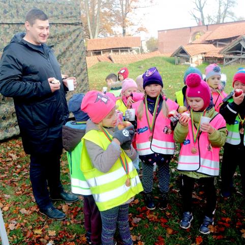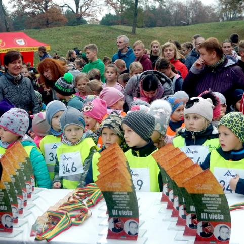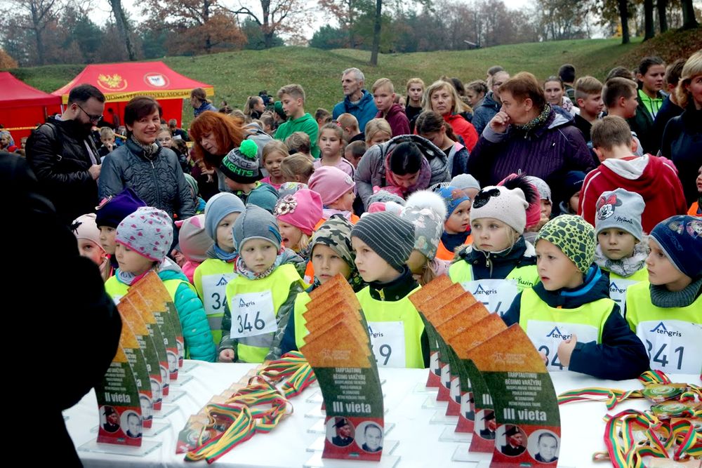 Var­žy­bos par­si­dė­jo nuo pa­čių ma­žiau­sių­jų – dar­že­li­nu­kų, ku­riems te­ko įveik­ti 300 m il­gio tra­są. Kad bė­gi­kai ne­pak­lys­tų vin­giuo­to­se pi­lia­kal­nio tra­so­se, jiems va­do­va­vo dvi­ra­ti­nin­kas. Sma­giai bei ryž­tin­gai nu­si­tei­kę vi­si ma­žie­ji bė­gi­kai (o jų net 139), pa­drą­sin­ti rū­pes­tin­gų­jų auk­lė­to­jų bei ar­ti­mų­jų ir drau­gų, pa­sie­kė fi­ni­šą ir nuo­šir­džiai džiau­gė­si pel­nę at­mi­ni­mo me­da­lius. To­kią pat tra­są te­ko bėg­ti ir I – II kla­sių pra­di­nu­kams. Vy­res­nie­ji pra­di­nu­kai bei V – VI kla­sių mo­ki­niai bė­go 500 met­rų, o vi­si ki­ti – 1000 met­rų.