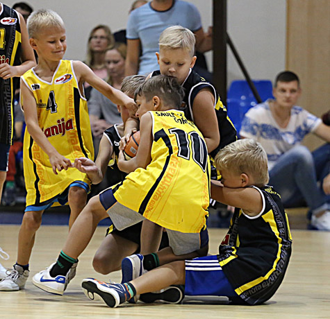 Krepšinio akademijoje „Saulė“, kol naujokai registravosi, senbuviai žaidė parodomąsias rungtynes. Salėje žiūrovų palaikomi mažieji krepšininkai kovojo dėl kiekvieno atšokusio kamuolio, griuvo ir tarsi vyrų rungtynėse diskutavo su teisėjais dėl priimtų sprendimų. Komandų akistatos vyko abiejose aikštės pusėse – vienoje žaidė berniukai, kitoje – mergaitės.