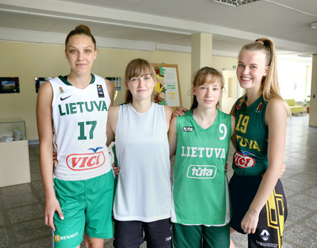 KREP­ŠI­NIN­KĖS: Iš kai­rės: Šiau­lių krep­ši­nio aka­de­mi­jos „Sau­lė“ auk­lė­ti­nės En­ri­ka Ma­tiu­kai­tė, Bri­gi­ta Si­nic­kai­tė, Do­mi­ny­ka Pa­liu­ly­tė ir Man­ta Ur­bo­nai­tė šią va­sa­rą ato­sto­ga­vo tik bir­že­lį, o lie­pą ir rugp­jū­tį pra­kai­tą lie­jo tre­ni­ruo­čių sto­vyk­lo­se ir rung­ty­nė­se.