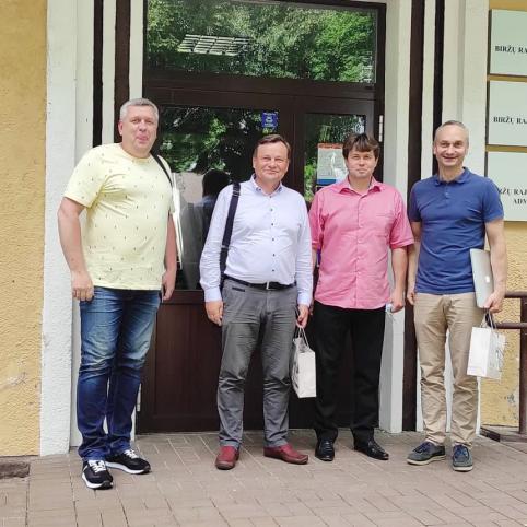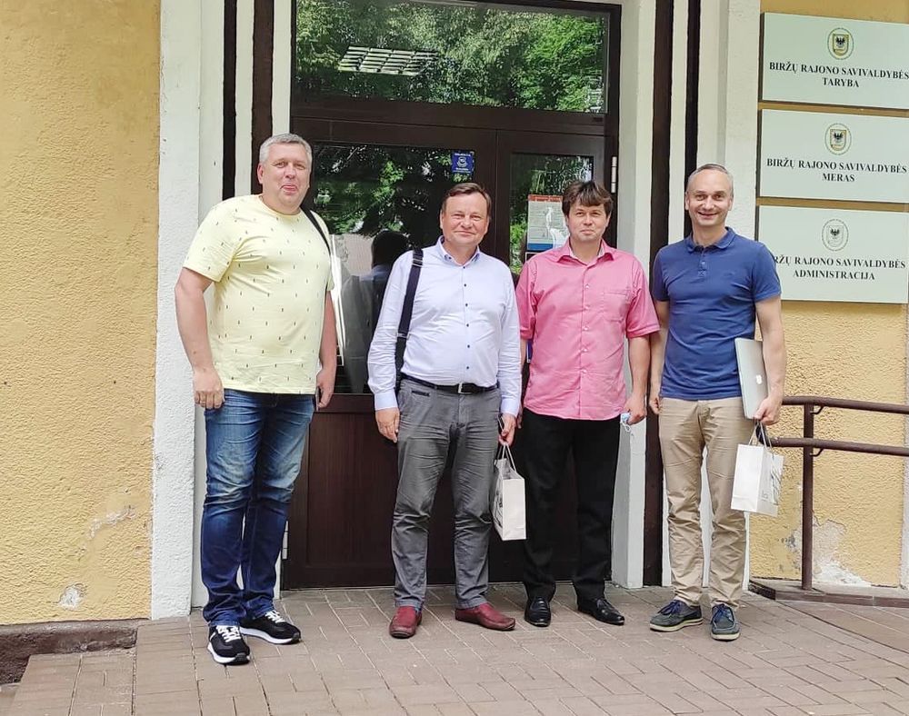 Prieš susitikimą su savivaldybės vadovais, iš kairės: krepšinio komandos „Biržai — KKSC“ treneris Ž. Kačinskas, LKTA prezidentas V. Gedvilas, Biržų kūno kultūros ir sporto centro direktorius S. Mitrochinas, į LKF generalinio sekretoriaus pareigas pretenduojantis M. Balčiūnas.