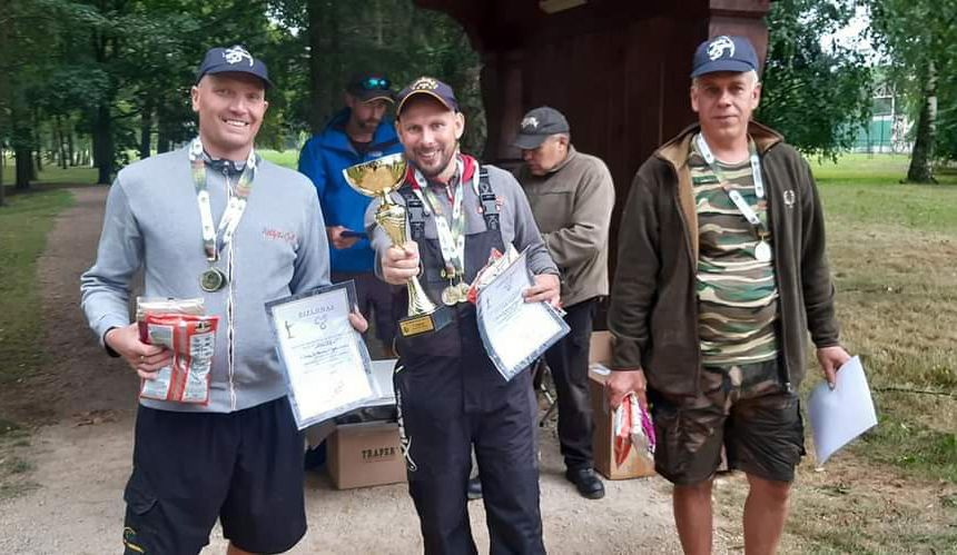 Žvejų varžybose „Širvėnos tiltas 2021“ pirmąją vietą iškovojo biržiečių komanda. (Iš kairės): Vaidas Gučas, Mindaugas Trybas, Dainius Ulevičius.