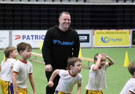 TRENERIS: Vienas iš darželinukų futbolo turnyro organizatorių Šiaulių futbolo akademijos ir vyrų komandos „Šiauliai“ treneris Deivis Kančelskis turnyre dalyvavo su „Ežerėlio“ auklėtiniais.