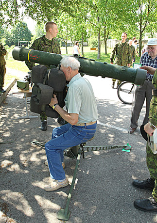 PRISIMINIMAS: Švedų gamintą zenitinį raketų kompleksą RBS-70, skirtą taikytis į skraidančius objektus, apžiūrėjęs pabališkis Stasys liko sužavėtas: „Kai tarnavau armijoje, tokių ginklų nebuvo“.