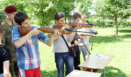 TAIKLUMAS: Taikliausiai oriniais šautuvais šaudė jaunieji Medelyno progimnazijos moksleiviai.