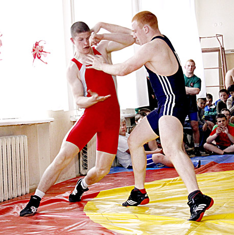 INTRIGA: Bronzos medalį pelnęs šiaulietis Vijolių mokyklos auklėtinis Tomas Žvirblis (kairėje) pasipriešino Latvijos rinktinės nariui Jevgenijui Kolsovui, bet pergalės nepelnė.