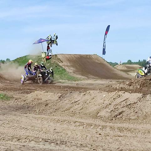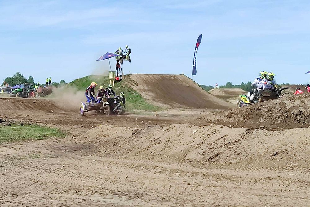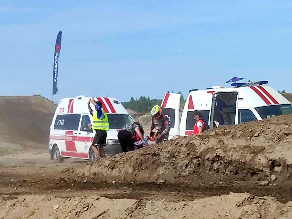Važiavimas motociklais su priekabomis Sūduvos komandai baigėsi nelaime - po susidūrimo vienas ekipažo narys patyrė traumą ir buvo išgabentas į ligoninę.