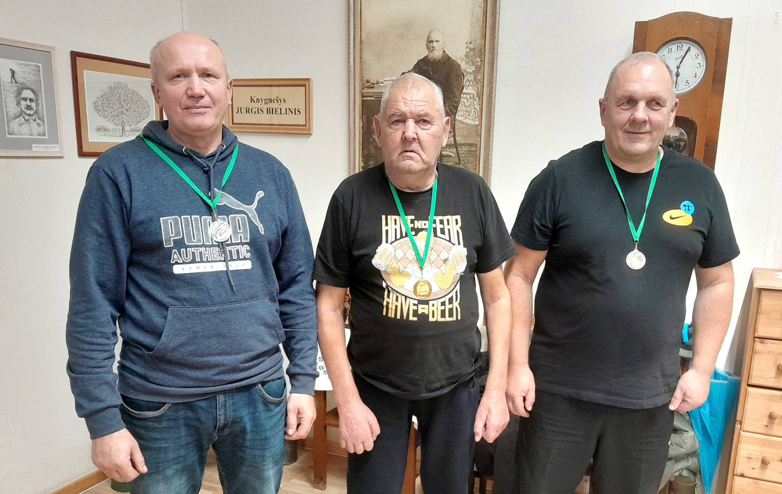Biržų rajono šaškių „žaibo“ turnyre sėkmė nusišypsojo vyriausiam žaidėjui, biržiečiui Jonui Šatui (viduryje). Vidmantas Murauskas (kairėje) laimėjo antrąją vietą, Edmundas Čirbulėnas šį kartą liko trečias