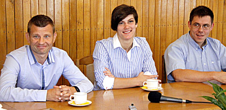 IRKLUOTOJAI: Pasaulio irklavimo čempionate 5 vietą iškovoję Šiaulių baidarininkai Aurimas Lankas (kairėje) ir Edvinas Ramanauskas apgailestavo, kad nepasiekė aukštesnės vietos, šalia – irkluotojų treneris Antanas Lankas.