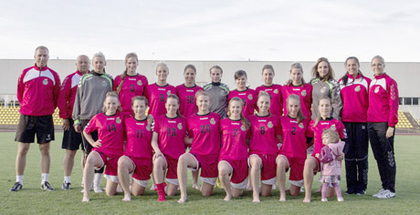 RINKTINĖ: Lietuvos garbę Moterų futbolo nacionalinių rinktinių Baltijos taurės varžybose gins šiauliečių „Gintros-Universiteto“ pagrindu sudaryta rinktinė. Treneris Rimantas Viktoravičius – antras iš kairės.