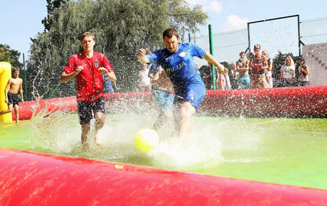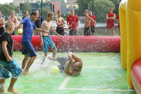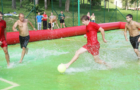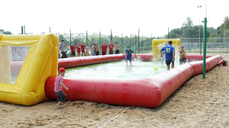AIKŠTĖ: Vandens futbolas vyksta 20 metrų ilgio ir 10 metrų pločio aikštėje, kurios šonai ir vartai pripučiami.
