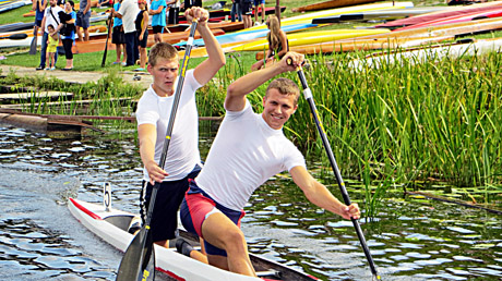 PRIZININKAI: Irdamiesi dviviete kanoja šiauliečiai Osvaldas Murza (dešinėje) ir Edgaras Dubeikaitis irklavimo čempionate Plungėje iškovojo antrąją vietą.