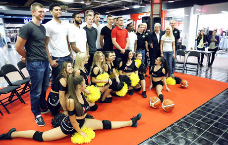 VIE­NY­BĖ: Se­zo­no iš­va­ka­rės – krep­ši­nin­kai ir šo­kė­jos su­sto­jo bend­rai nuo­trau­kai.