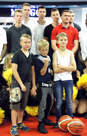 Po ko­man­dos pri­sta­ty­mo ma­žiau­sie­ji sku­bė­jo nusifotografuoti ir pasikalbėti su krep­ši­nin­kais.