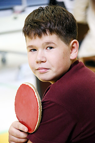 STAIGMENA: Turnyro staigmena tapo „Saulės“ pagrindinės mokyklos ketvirtokas Marijus Jučinskas, tarp tituluotų vyresnių tenisininkų žaidime senovinėmis raketėmis užėmęs trečią vietą.