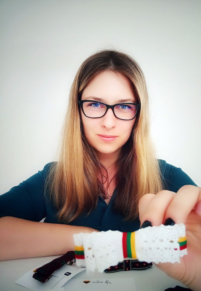 Mano kuriami aksesuarai – tai tarsi modernus tautinis kostiumas, subtili aprangos detalė su žinute apie mūsų tautos šaknis, apie namus, apie promočiučių pirkioje austas juostas, baltas iškrakmolytas ir nėriniais puoštas pagalves, prisiminimai apie šviežią varškės sūrį ir per pirštus tekantį medų... Maža dalis protėvių istorijos, kurią kiekvienas išdidžiai gali nešiotis su savimi. Mano rankose dažnai atsiduria ir daug metų spintose dūlėję austi rankšluosčiai, jubiliejaus proga dovanotos tautinės juostos – daiktai, turintys emocinę vertę, kuriuos išmesti gaila, o panaudoti nėra kur. Vienas iš paskutinių mano sėkmės istorijų, kai kreipėsi moteris, kuri klausė ar galima ką nors padaryti su prieš beveik 40 metų krykštinų proga dovanų gauta Dzūkiška austa juosta? Šios juostos elementas nugulė ant rankinės. Liko prisiminimas, kuris kasdien džiugina akį. Žinoma, darant tokius darbus, dažnai šimtą kartų permąstau ar jau tikrai kerpam. Ne visi mano aksesuarai su tokia gilia istorija, naudoju ir moderniai mašinomis austas juostas, juosteles, tačiau nuolat ieškau naujų raštų, spalvų, kuriuose būtų baltiški motyvai. Audinių pardavėjos Kaune mane jau pažįsta ir pasitinka su šypsena, nedažnai klientai ateina pirkti tautinių juostų. O po to jau prasideda idėjos generavimas, rašto prisijaukinimas, vizijos, kam ji būtų labiau tinkama: plaukų segei, vyriškai varlytei, o gal kūdikio čiulptuko laikikliui ar net šuns antkakliui jo šeimininko karininko vestuvių proga.