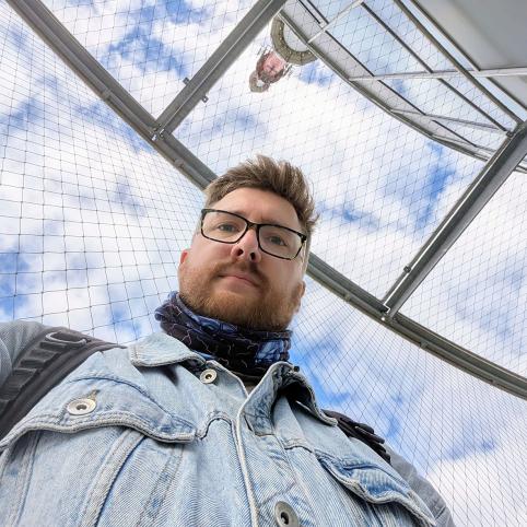 Justinas Jažauskas gimė 1986 metų rugsėjo 25 dieną Biržuose. Augo meniškoje aplinkoje, todėl jau vaikystėje siekė išbandyti save kūryboje. Mokėsi Biržų pagrindinėje mokykloje ir „Saulės“ gimnazijoje, buvo Biržų dailės mokyklos mokinys. Vėliau baigė interaktyvaus dizaino studijas Vilniaus technologijų ir dizaino kolegijoje. Kurį laiką kūrė trumpus animacinius filmukus. Laisvu laiku piešia komiksus, rašo jų istorijas. Dirba videožaidimų studijoje dailininku. Piešia grafiką mobiliųjų telefonų žaidimams. Kaip sako pats menininkas, jo darbų įkvėpimas – tai kitų autorių kūryba: knygos, filmai, žaidimai, muzika. Išleido komiksų knygą su istorijomis vaikams „Nuotykiai Gilių gatvėje“ (2016 metai).
