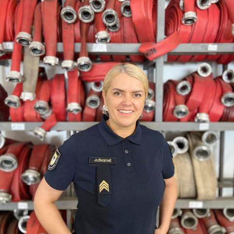 Oksana Juškienė jau vienuolika metų dirba ugniagese gelbėtoja Biržuose ir dėl šio savo pasirinkimo niekada nesuabejojo.