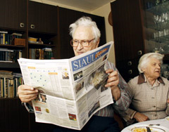 NUOMONĖ: Šiaulietis Rapolas Šlivinskas „Šiaulių kraštą“ skaito nuo pirmojo numerio, bandė vienu metu prenumeruoti kitą laikraštį, bet greitai grįžo: “Man patinka, kad “Šiaulių kraštas“ nuosaikus, objektyvus laikraštis.“ Šalia - žmona Genovaitė.