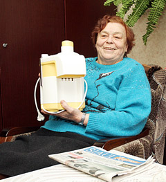 DOVANA: „Šiaulių krašto“ prenumeratorė Ona Pališaitienė už 200 litų „Saulės miesto“ vertės kuponą įsigijo sulčiaspaudę.