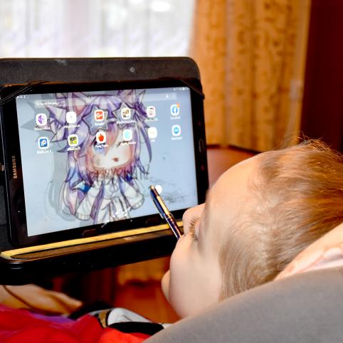 Judėti negalinti Vakarė naršo internete kaip žuvis vandeny. Kaip? Savo burnytėje ji laiko į medicininį vamzdelį įmontuotą tušinuką (močiutės Laimos išradimas) ir nepaprastu greičiu juo valdo planšetės ekraną. Taip Vakarė rašo rašinėlius, sprendžia užduotis, piešia, žaidžia kompiuterinius žaidimus, bendrauja.