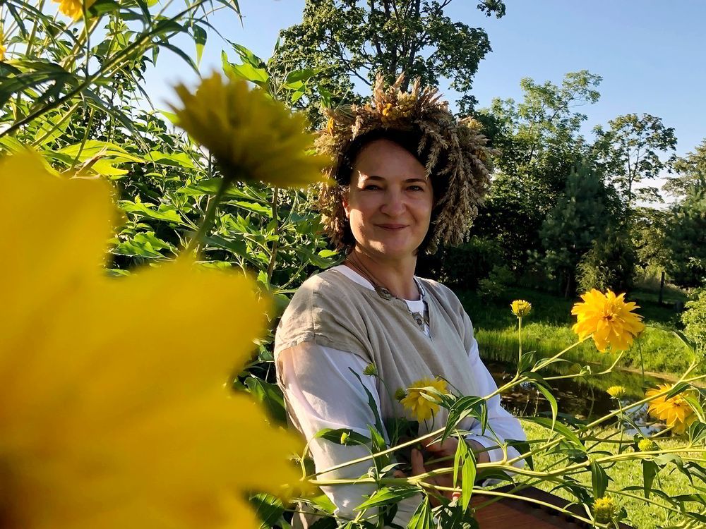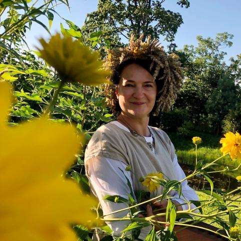 „Nenoriu pigios, blizgučiais padabintos kultūros“, sako mokytoja Vigilija Macienė. (Fotosesija sodyboje pas Liną ir Kęstutį Matuliauskus).