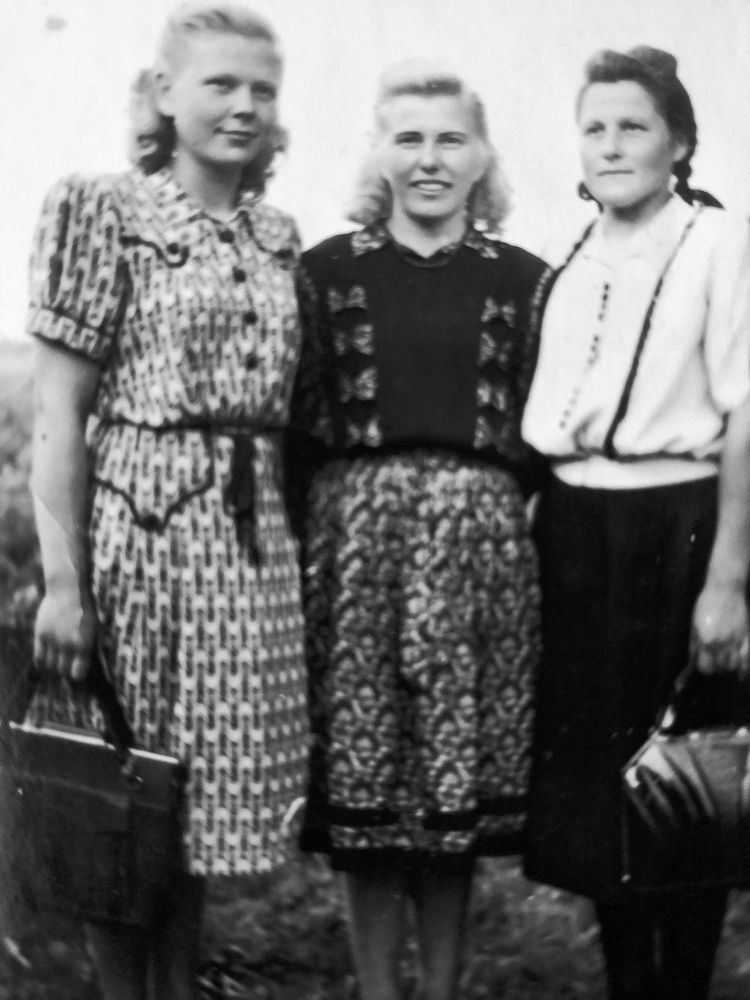 Per Grūbiškio kaimą ėjo frontas. Sviliuose laikėsi vokiečiai, o nuo Raudonbalės miško, per Voriškius, ėjo rusai. Turtą, kas vertingiau, tėvas su arkliu išvežė į artimiausią mišką. Rūkytą mėsą užkasė po akmenų krūva. Kaimo žmonės buvo išsikasę apkasus prie namų. Mama mokėjo rusiškai kalbėti. Paklausus rusų kareivių, ar saugu likti apkasuose, o gal reikia trauktis į mišką, jokio atsakymo nesulaukė. Penkiolika kaimo gyventojų nutarė pasitraukti į mišką.