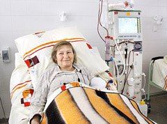 LIGONĖ: Vigina Remeikienė palygino: į Dializių centrą ji vaikšto kaip į darbą. Kol aparatas 4 valandas valo kraują, dializuojami ligoniai pasikalba, pajuokauja.