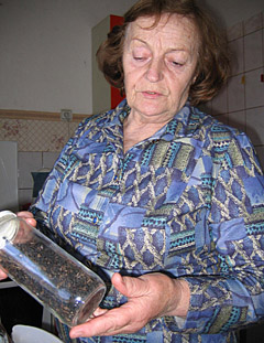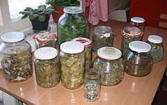 Birutė Virganavičienė iš spintelių traukia ir ant stalo deda stiklainiukus su žolelėmis, uogomis. Ant reto stiklainiuko užklijuotas užrašas, kokios žolelės ten sudėtos. Moteris kiekvieną augalą pažįsta vos akį užmetusi.