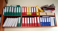 SAVANORIAI: Neurologijos skyriaus gydytojų kabinete — lentyna su bylomis, kuriuose fiksuojami bandymai su dar tik kuriamais vaistais nuo išsėtinės sklerozės. Kazla