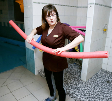 KINEZITERAPEUTĖ: Kineziterapeutė Alma Zikienė sako, jog pasimankštinti vandenyje dažniau ateina moterys. Specialistė taip pat veda užsiėmimus nėščiosioms ir mamoms su kūdikiais.