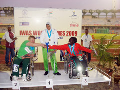 VICEČEMPIONĖ: Praeitais metais Indijoje vykusiame neįgaliųjų lengvosios atletikos čempionate ieties metimo rungtyje I. Perminienė (pirma iš kairės) iškovojo antrąją vietą.
