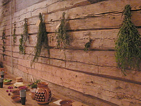 AUGALAI: Šalia dvaro išaugę laukiniai valgomi augalai buvo sukabinti ant svirno sienų.