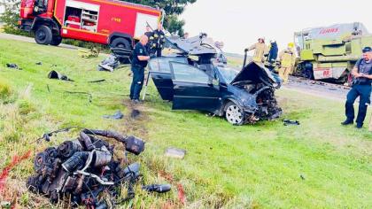 Po susidūrimo su kombainu – automobilis į metalo laužą, vairuotojas – į ligoninę