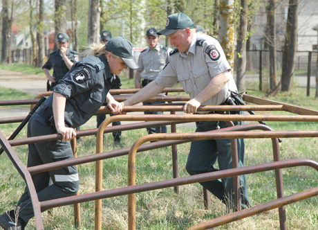 PATRULIAI: Radviliškio rajono policijos komisariato patruliai Gintautas Palapis ir Eglė Gustytė pripažinti geriausiais. Nepriekaištingai abu pareigūnai įvykdė ir kliūčių ruožo užduotis.