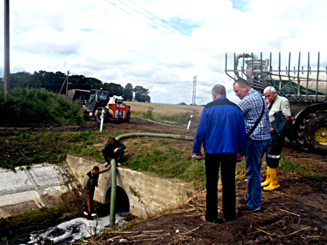 Vakar, apie šeštą valandą ryto, bepumpuojant srutas į laukus, trūko žarna, ir dvokiančios srutos ėmė tekėti į melioracijos griovį.
