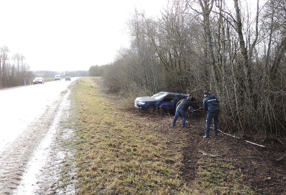 Praė­ju­sį ant­ra­die­nį ke­ly­je Bir­žai-Ger­ma­niš­kis ties Juo­de­lių kai­mu dėl "juo­do­jo le­do" nuo ke­lio nu­va­žia­vo leng­va­sis au­to­mo­bi­lis, ku­rio ke­lei­vė bu­vo su­žeis­ta. Au­to­mo­bi­lis su­dau­žy­tas ne­pa­tai­so­mai. Ava­ri­jos ap­lin­ky­bes fik­sa­vo po­li­ci­jos pa­rei­gū­nai. Ne tik ty­rė įvy­kį, bet ato­kiau nuo ava­ri­jos vie­tos stab­dė au­to­mo­bi­lius ir per­spė­da­vo vai­ruo­to­jus, jog ke­lias pa­vo­jin­gai sli­dus - rei­kia va­žiuo­ti la­bai at­sar­giai.