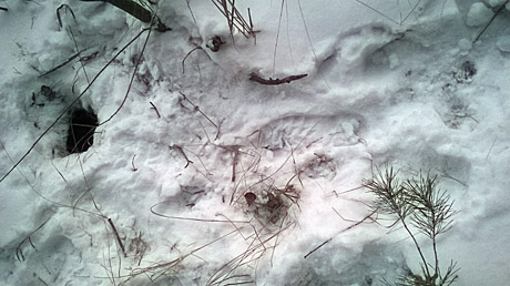 ĮRODYMAS: Sniege paliktos pėdos – įrodymas, kad sulaikyti vyrai ir jų keturkojis vaikščiojo aplink kailinių žvėrelių urvus, norint juos sumedžioti.
