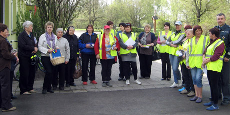 AKCIJA: Susirinkusiems skaistgiriečiams išdalintos liemenės, atšvaitai.